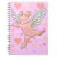Reproduced from an original illustration of a cute flying pig, with pink hearts as a background.