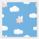 Flying Pig Cute Piglet with Wings on Blue Pattern Wallpaper