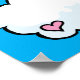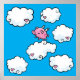 A cheerful poster featuring a digital cartoon pink pig with little white wings, dances on clouds embellished with hearts up in the bright blue sky.