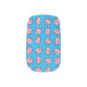 A set of nails featuring an adorable repeating pattern of a flying pink pig on a vivid blue background.