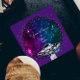 Flying purple saucer in the artistic galaxy square business card