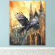 Flying Raven and Medieval Gothic Cathedral Canvas Print