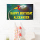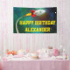 Announce your child's birthday party in style with this cool spaceship birthday banner.