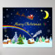 Beautiful snowscapes with Christmas trees, houses, a snow man, and a rainbow over the snow falling from the sky. Santa Claus flying over the Crescent moon on Christmas night.