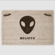 Perfect gift for geeks, sci-fi enthusiasts and believers in extraterrestrial life! This unique doormat features artwork of an alien and two flying saucers, along with a customizable "Believe" message. Whether you're decorating your space-themed home or shopping for the perfect gift for your favorite astronomy buff, this doormat adds a fun, otherworldly touch to any entryway.