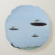 A watercolor painting of three flying saucer UFOs over the mountains adorns this pillow!