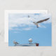 Flying Sitting Seagulls Birds Blue Sky Postcard