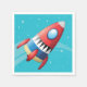 Dreaming of flying through space in a spaceship. Well then this design will answer that dream. It is off a colorful spaceship that is zipping through space. The rocket is is multicolored and has a vapour trail out the back. It is set against a blue background. This flying spaceship design looks great on these paper napkins. Perfect for yourself or as a gift