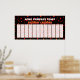 Bright red-orange spheres and sticks float against a black background to set off a perpetual birthday calendar. Customize with your family, company or organization name at the top. Once it's hanging on your wall, you can write in the name of anyone and everyone whose birthday you want to remember for years. This calendar poster is taken from a traditional Dutch birthday calendar idea where a birthday calendar is hung in a handy place to be visible every day.