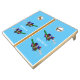 Natural Wood Cornhole Set, Royal Blue and Yellow bags