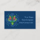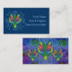 A green sea turtle with wings of flame flies downward against a abstract swirling blue waves. Business card template -- add your own information.