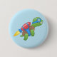 Adventurous turtle with a red rocket jetpack and aviator goggles is flying with a happy grin.