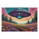 Flying UFOs Over Flower Field Landscape Poster