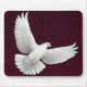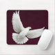 Original fine art painting of a flying white dove by artist Carolyn McFann of Two Purring Cats Studio printed on a quality and easily customizable mousepad.