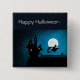 a witch flying on her broomstick past the full moon with a dark house in the background and a cat on the fence