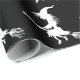 A spooky witch flying on a broomstick accents this wrapping paper, making it perfect for a Halloween gift.
