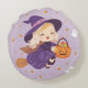 Bring cozy Halloween vibes to your space! 💜🧙♀️ This round pillow features a cute blonde witch flying with her pumpkin candy bucket, surrounded by happy ghosts and sweets. A fun and charming accent for your sofa, bed, or kids’ room — perfect for Halloween décor or as a cute seasonal gift! 🎃👻
