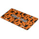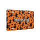 Young flying witches riding brooms. Flying bats. Seamless pattern. Custom background color. Custom text.