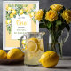 Foam Board Lemon citrus 1st birthday, drawn in soft pastel colors in a watercolor style.