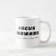 This coffee mug features a stylish text-line design that says "Focus Forward For a Better Future". The color of the design elements can be customized, as well as the textual content of "For a Better Future".
