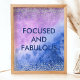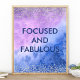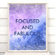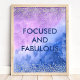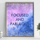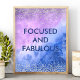 Focused and Fabulous Custom Watercolor Quote Poster. Trendy custom designed watercolor typography motivational inspirational quote design. This girly girl boss design has a purple blue watercolor background with silver glitter accents. Motivate yourself to work hard! Personalize this custom design with your own text or quote.