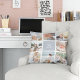 Customize this throw pillow with eight square photos arranged in a grid collage layout, with your single initial monogram in fog gray in the center square. Pillow reverses to a subtle dotted diamond pattern in matching gray and white.