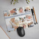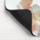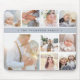 Chic photo collage mousepad displays nine favorite photos in a square format, with your family name, business name or choice of personalization displayed on a thin band of fog gray.