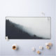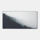 Landscape photograph of a disappearing morning fog over forest layers with diagonal lines.