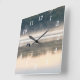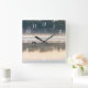 Wall clock featuring a Great Blue Heron crane in flight on a beautiful foggy morning over Lake Springfield in Springfield Missouri.