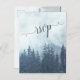 Foggy Mountains Blue Pine Forest Wedding RSVP Postcard