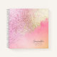 This stylish notebook features an angled abstract background that sparkles in shades of gold through peach and watermelon. Add name, title or tagline on the front and contact details on the reverse side. A chic and professional choice for any beauty, fashion or style-related business. Search ID775 to see other products with this design, including matching business cards.