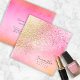This stylish makeup artist's business card features an angled abstract background that sparkles in shades of gold through peach and watermelon. Add name, title or tagline on the front and contact details on the reverse side. A chic and professional choice for any beauty, fashion or style-related business. Shown here in a modern square business card size. Search ID775 to see other size, color options and professions with this glam background pattern.