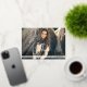 Real Foil College Bound High School Graduation Announcement. Custom photo announcement has one main photo of the graduate on the front and a smaller photo on the back where you can put a childhood photo or a high school sports photo, for example.