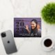 Cool modern graduation photo announcements with a moveable "class of 2023" text overlay and templates for your name, school name, and photo. The reverse side of this card features a space for an additional photo and text To move the text or change the background color, use the customize tool.