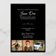 This editable invitation has a black background with elegant, gold foil lettering on the front. You can personalize this invitation with up to four photos. To edit the lettering on the front of the invitation, you must edit the lettering on the front and the foil layer.