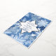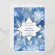 Wintery snowflake-themed wedding invitation with silver foil embellishments on the border, snowflakes, and couple names.