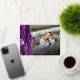 This elegant wedding thank you postcard features a purple watercolor agate border trimmed with faux silver glitter. Easily replace the sample image with your own photo of the bride and groom. The customizable text overlay combines the words "Thank You" in real silver foil handwriting script with your name and wedding date in silver gray copperplate font; a black gradient filter helps make the text pop. Add your return address and a message of thanks to the reverse side.