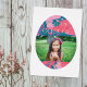 This festive holiday photo card features a large Easter egg design with a bold marble texture background. The "Happy Easter" greeting, as well as the name and date, are pressed in gold or silver foil for added elegance, and to contrast the colorful background. There is ample space for a customer photo within the egg design. The back of the card features a simple stripe pattern with the same marble texture.