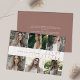 Modern graduation announcement card features six of your favorite photos aligned side by side in two rows, with your graduate's name displayed at the center in rose gold foil lettering. Personalize with your school and graduation year through the center. Add a personal message and an additional photo to the back.