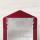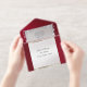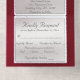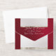This elegant All In One wedding invitation features a silver pearl center on a ruby, red background, an ornate frame and scroll heart with bride & groom's names in foil. Designed to coordinate with the "Ornate Frame & Hearts" Wedding Collection. To change details, click «Personalize». To move the text or change the text size, font, or color click «Click to customize further»
