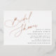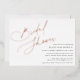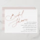 Simple and elegant bridal shower invitation for modern brides-to-be features "bridal shower" at the top left in chic rose gold foil script typography. Personalize with your bridal shower details. A modern bridal shower design in chic blush pink and gray.