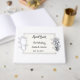 This guest book is shown in a layout for a wedding with a lovely butterfly print and real gilded silver foil accents.