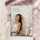 Chic and modern graduation announcement features a single vertical/portrait oriented photo in an arched layout, with climbing vines of rose gold foil botanical leaves along the right side. Personalize with your graduate's name, class year, and school and add a personal message to the back, along with an additional photo.