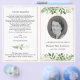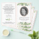 Foldable memorial program, greenery & rose gold flyer
