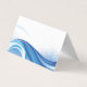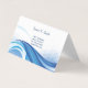 This stylish folded business card is shown with a blue wave abstract art print with navy blue text color.