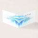 This folded business calling card is shown in a basic classic white with a blue wave abstract art print with navy blue text color.