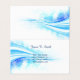 This folded business calling card is shown in a basic classic white with a blue wave abstract art print with navy blue text color.