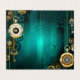 Jewelry, gold watch with a gold chain and keys on a green textural background. Steampunk style.