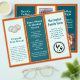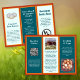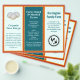 Three section flyer / business brochure with a chicken farm theme. (Easily change text and images for your needs.) Red, orange and teal blue colors and six sections, using both sides, to add lots of information about your business. Templates are provided for all titles and wording, with a whole about section with photo and text. Use the QR code image to add your own, along with a logo on the front page. Egg images can be left as part of the design, or replace them with images of your own. Fold either like an accordion, or double fold inward. Paper size is 8.5 x 11 inches.