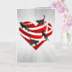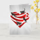 This is a unique cat lover's folded greeting card. It has a metallic red heart cut out with 4 black cats walking up, down and across on it with silver rays in the background. For all cat lovers especially black cat lovers! Send to your cat loving friends or cat loving significant other.